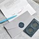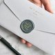 商品包含:两张万用信封袋(白/灰各一) + 两小张皮革仿蜡封章封口贴纸。