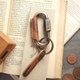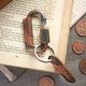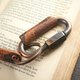 铜色电镀螺丝登山扣,迷彩皮革包裹着您的名字小标签。