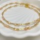 直径约3-3.5mm的天然淡水橘色珍珠呈现出强光炫彩的天然美感,颗颗珍珠有强光炫彩,虽有微瑕微生长纹,但是整体间隔排列成一线并由s925银14k注金的切花配件。间隔排列呈现出微波般的色彩层次感。纱织小姐为其配以心形磁吸扣,形成总长约46cm的华丽轻奢款项链毛衣链。你可以一边摇曳生姿,一边简约美好,可以点亮你的所有简单衣裳。美好的天然淡水珍珠表面呈现出难以名状的炫彩色调,自然光下每一颗都分别呈现出各自的七彩光芒炫彩,皮光细腻,微瑕炫彩,似镜面可照出人影,美得不可方物。