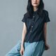 内敛的靛蓝色,珍珠般的贝壳扣,轻快的短版设计,搭配任何下身都让身材比例变得更好。