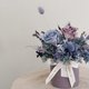 日本大地农园顶级永生玫瑰花(浅灰紫、浅灰蓝)、日本大地农园顶级永生绣球花(紫、蓝)、永生浅蓝卡斯比亚、永生靛蓝兔尾、薰衣草、永生紫色木满天星、永生黑色富贵叶、永生紫色水晶花