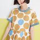 可爱的小立领/牛仔布料跟大圆点点的拼接/感觉可以去80年代的舞会/大圆裙/后开木扣