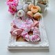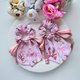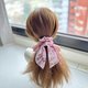 使用美国品牌棉布搭配制作成长尾蝴蝶结、加上缎带和钉珠做成的发圈,气质浪漫,无论上班或休闲聚会都适合配戴。