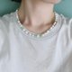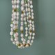 - A necklace with a rich combination of delicate flower glass beads and vintage seed beads scattered randomly and freshwater pearls that are distorted in size.