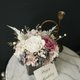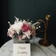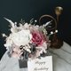 这款桌花使用日本大地农场有机永生不凋玫瑰/不凋绣球,莓果粉色/白色/浅蜜桃粉+烟熏粉黑灰色系是温柔成熟的配色,搭配卡斯比亚籍由加利叶整体会有淡淡的花草清香,好好照顾可以观赏3年以上喔~若需做成捧花请来信定制报价喔~