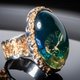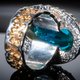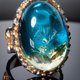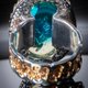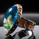 这枚独特的戒指采用稀有的蓝色琥珀制成,天然闪烁的斑点在光线下熠熠生辉。每颗斑点皆独一无二,营造出无法复制的深邃感与神奇内在光晕。