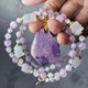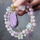 链身以猫眼紫锂辉、蓝月光石交织,宝石水光温润、猫眼闪现、色彩优雅,柔美衬托主坠舒俱来,有紫气东来、如沐春风之感。