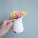 .乡村风的白粉黄色系干燥花搭配乡村仿旧风奶壶花器