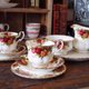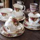 品名:英国古董名瓷 Royal Albert 经典玫瑰花 咖啡杯组+点心盘