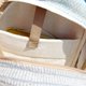 ▲前方的多层次棉麻口袋,放置笔类或小东西非常方便