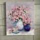 以柔和的粉色与淡紫调为主,描绘一束盛开的粉白花卉,静静绽放于午后的光影之中。画面中白瓷壶与紫色花瓶交织出层次感,搭配一杯热茶,营造出静谧温柔的氛围。每一笔色彩皆由艺术家亲手描绘,独一无二,象征春日绽放的温柔与心的平静。