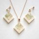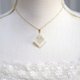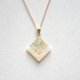 这款坠饰采用透明树脂,内嵌白色贝壳与翡翠碎石,并以光泽感的白色边框点缀。