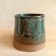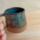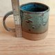 这是一个手捏马克杯,厚度约为0.2厘米左右,总重量约113公克,是市面上少见的作品。光滑的表面有几处带有部份陶土与釉药结合后产生的粒状凸起质感,釉色变化丰富!