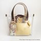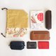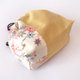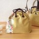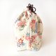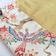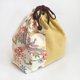 The drawstring bag is made from linen and kimono with autumn leaves and birds pattern.