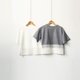 - 厚实短袖T,搭配半篓空雪纺,小露腰间。