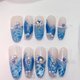 - 深蓝海潮与星光在指尖交会, 半透明雾感基底包覆蓝色流纹,如夜海静静起伏。 星形晶石与珍珠点缀其中,低调却无法忽视。 全手工制作,每一片纹理皆独一无二, 像一枚来自深海的护符, 陪伴你在需要安定、直觉与力量的时刻, 静静发光。