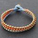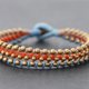 橙色蓝色黄铜编织串珠手镯,实心黄铜串珠多股袖口手镯