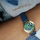 深蓝皮革带配鲍贝格格表面,简单而超引人注目的款。