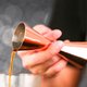 经典的双头金环量酒器,也称为“蛊司杯”,用于准确地量度液体,两头容量不一。中间细小,方便握拿。中段金色接环体现了量酒器的优雅品味。