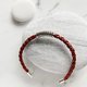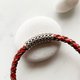 皮革手工编织+925银手环,选用植鞣皮绳纯手工染色编织完成,加上刻満心型篓空925银管,象征满心欢喜姻缘圆满,手围皆可定制,手围皆可定制,手环扣为纯银扣头,精致又馥仙气
