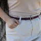皮带由两块皮革组成,牢固地粘合和缝合在一起。这将使其坚固且不会像单层皮带那样伸展。皮带有一个坚固的金属扣,用三个铆钉牢固固定。它还有 7 个孔,您可以在其中系紧皮带。它们之间的距离为 6/8 英寸。