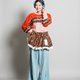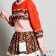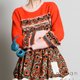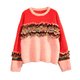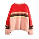 正面与袖子上装饰着色彩鲜艳的非洲布料与网纱拼接而成的荷叶边,搭配充满活力的多色条纹,打造出独一无二、华丽又可爱的针织衫。