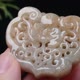 【名称】冰种飘黄翡翠篓空雕如意项链