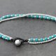 这是一款手工编织的脚链,由深棕色棉蜡线与绿松石一起编织而成。