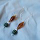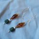 金属波浪4.2cm 链长5.5cm, 琥珀树脂3.2 x1.2cm,日本枣珠1.2x1.4 cm