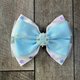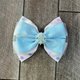 公主蝴蝶结,女孩头发的单一蝴蝶结艾莎公主主题图案 丝带大钢琴以及饰有艾莎公主图案的白色蓝色丝带 蝴蝶结尺寸10cm 弹簧夹尺寸8cm