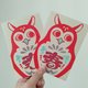 我们使用梅屋的吉祥物系列制作了这款明信片。这是相同图案“赤枭”的两张一组。尺寸为 W100mm×H148mm (含 OPP 独立包装袋),采用带有纸质杂质的厚富士藁纸印刷。印刷方式为复古印刷 (孔版印刷的一种,类似risoграф、网版印刷或版画,印刷时可能会有错位或模糊的痕迹。此外,用力摩擦时可能会掉色,这是其特色)。