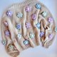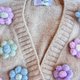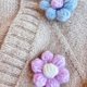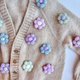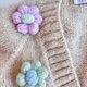 开襟衫上缝有不同颜色的立体3D花朵:蓝色、粉红色、淡紫色和薄荷色。开襟衫采用非常柔软的纱线制成,完全不吸湿,专为娇嫩肌肤设计。