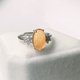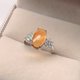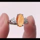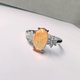 简约四爪镶款让主石火蛋白更加突出,随着转动晶体内的橙色波纹变化犹如画般,侧边闪亮白锆镶崁的小花造型,时髦又优雅