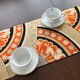 一条华丽的日本编织腰带被重新制作成桌旗,在金色和黑色的背景上呈现出扇形图案。