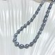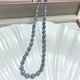 巴洛克珍珠的美,就是这么有个性,就是这么不拘一格。最小直径6-7mm的天然海水巴洛克珍珠呈现出稀有美好的银灰炫彩色,纱织小姐为其用 S925银珠切花隔珠相间,并以S925银双挂钩搭扣相连接,总长约49mm,精致与舒适感双双呈现。让不规则的巴洛克珍珠帮你诠释你不拘一格的美。