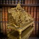 这是一座非常华丽的古董逸品,材质为青铜鎏金,鎏金纯度为24K的黄金,因此他的颜色非常的鲜艳明亮,鎏金层也保持的蛮不错,在光线的照射下,非常闪耀且震撼,整体的工法非常的细致,每一层的隔板设计皆不同,细致且华丽,非常有层次感,因为蛮有重量的,因此他还设计有双把手,方便拿取,这是一座非常经典的新古典风格逸品,非常少见,值得珍藏。