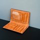 制作过程会把皮革削薄至合适厚度, 再把两块皮革进行对贴, 从而令整个卡套都看不见毛躁皮底, 提升完成度