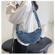 牛仔布休闲日系单肩包斜背饺子包 2918-1005 蓝色