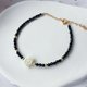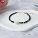 **【墨雪】天然白贝母玫瑰 黑尖晶 14K包金设计款手链**