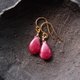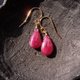 - 简约的钩状耳针,采用深红宝石制成,颜色自然而沉稳,显得成熟。这是一对精选的扁平中型颗粒。
