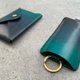 手染皮革 黑绿色 轻巧 锁匙包 钥匙包
