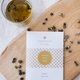 这款牛奶朱古力采用的顶级香片龙珠茶,茶叶卷成美丽的珍珠状。 将茶叶磨碎后,加进可可豆中一起研磨,磨至舌头也感受不到颗粒的幻滑程度。