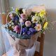 本花束以缤纷色大理花为主,搭配当季花材、叶材。