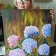绣球花画,原创油画,拉伸画布,尺寸为 70 厘米 x 50 厘米,由当代欧盟艺术家 Inna Bebrisa 手工制作。