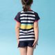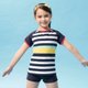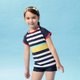 女童专属泳装,以活泼条纹搭配亮眼配色,让孩子自在玩水又超吸睛~