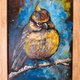 原创压克力画《冬日树枝上的雀》已裱框,可作为礼物