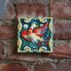 - Ceramic handpainted relief tile featuring a mythological creature Phoenix. According to legends, old Slavic symbols on the tiles will protect you from harm and will bring luck.