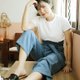 **Cotton relaxed wrapped pants with loose silhouette, wide-leg cutting and adjustable waist.**