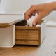 我们确保我们的大型模块化抽屉与 Oakywood 书桌层架完美兼容。木质抽屉的深度与层架的宽度一致,金属底座与层架支架的形状和尺寸相呼应,确保即使存放较重物品也能稳固存放。抽屉配有简洁的把手,方便打开。此外,还附有一个文具收纳盒,巧妙地体现了日式的精致美学。