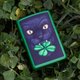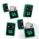 这款明亮的草绿色雾面打火机采用彩色图像设计呈现主题,一只神秘的黑猫嘴叼四叶幸运草,为你驱除坏运、带来好运。